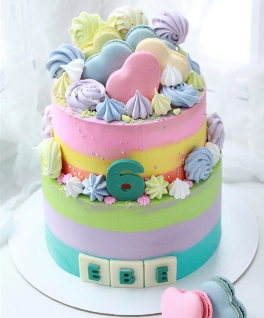 Маленькая любительница зефира, безе и всего разноцветного явно будет прыгать от восторга, когда получит в подарок этот тортик